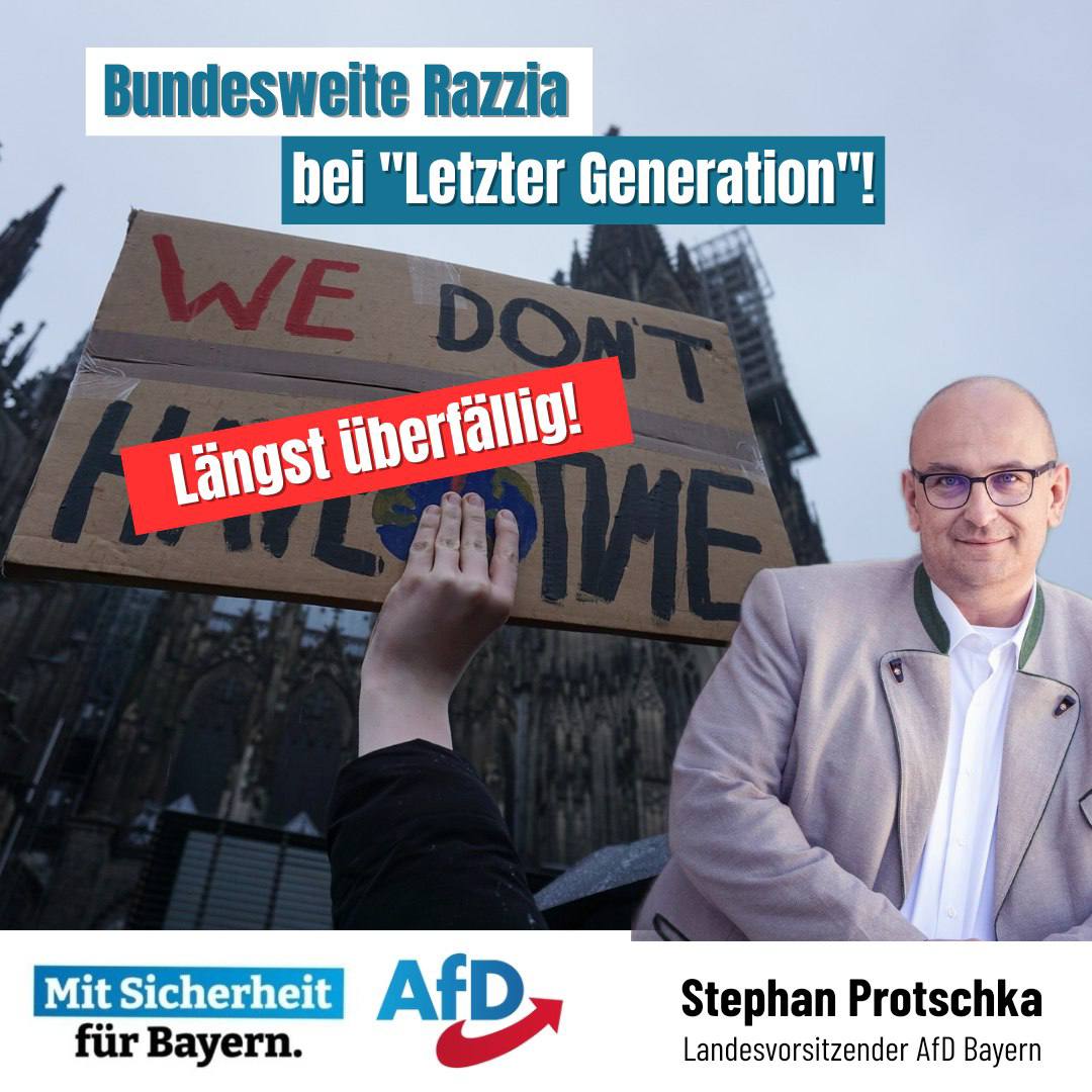 Stephan Protschka: ‚Letzte Generation‘ muss mit ganzer Härte des Rechtsstaates bekämpft werden!