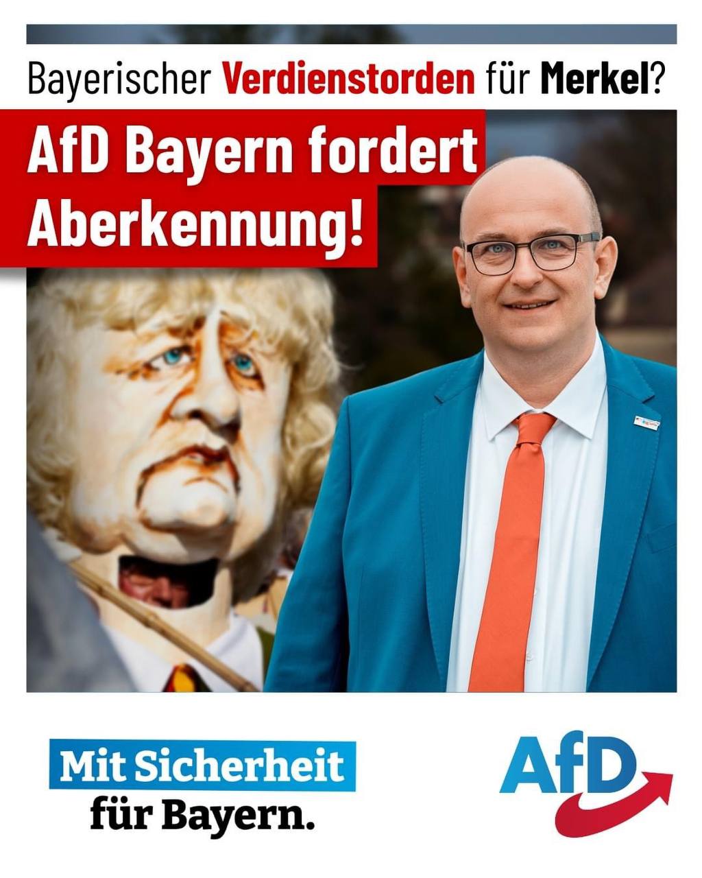 AfD Bayern fordert Aberkennung des bayerischen Verdienstordens von Angela Merkel