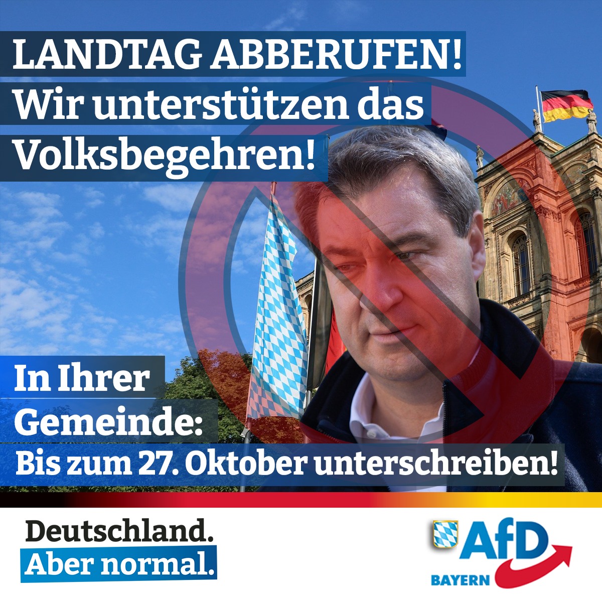 Sie können noch bis zum 27. Oktober in allen Gemeinden in Bayern unterschreiben. Nutzen Sie die Direkte Demokratie, um Söder einen Denkzettel zu verpassen!