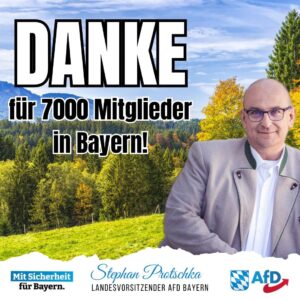 Die Alternative für Deutschland (AfD) Bayern freut sich, bekanntgeben zu können, dass die Mitgliederzahl die Marke von 7000 erreicht hat ...